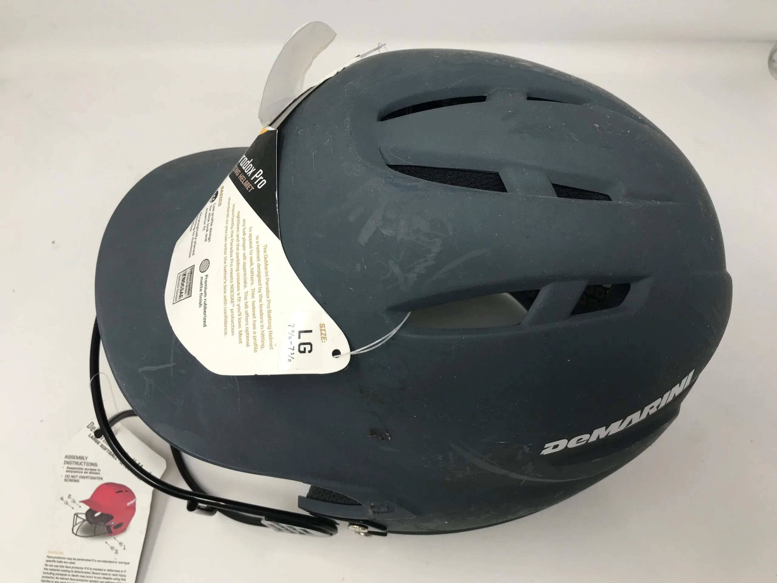 Has some sort of sticky residue on top of helmet due to storage. Brand New still has tags, never warn.